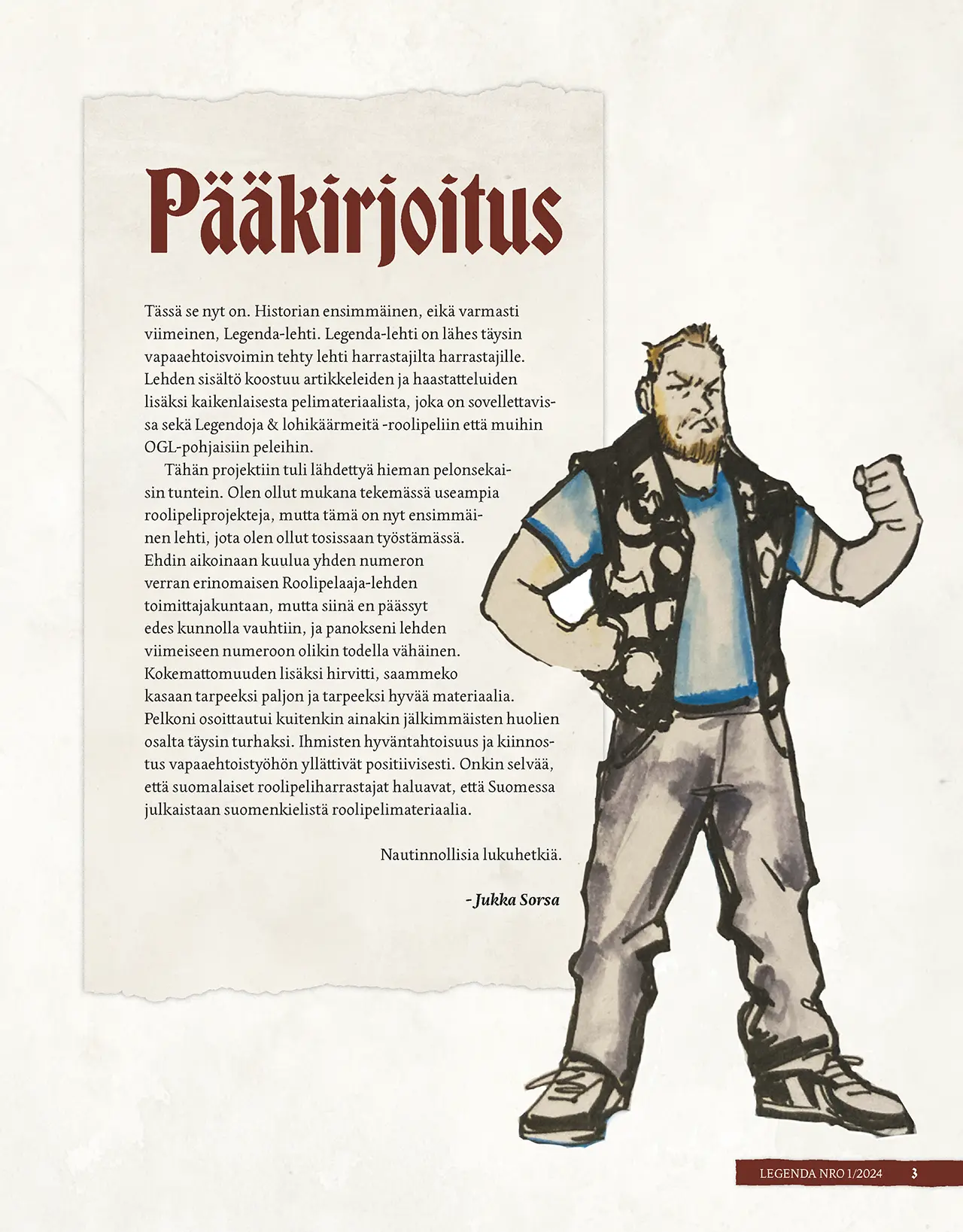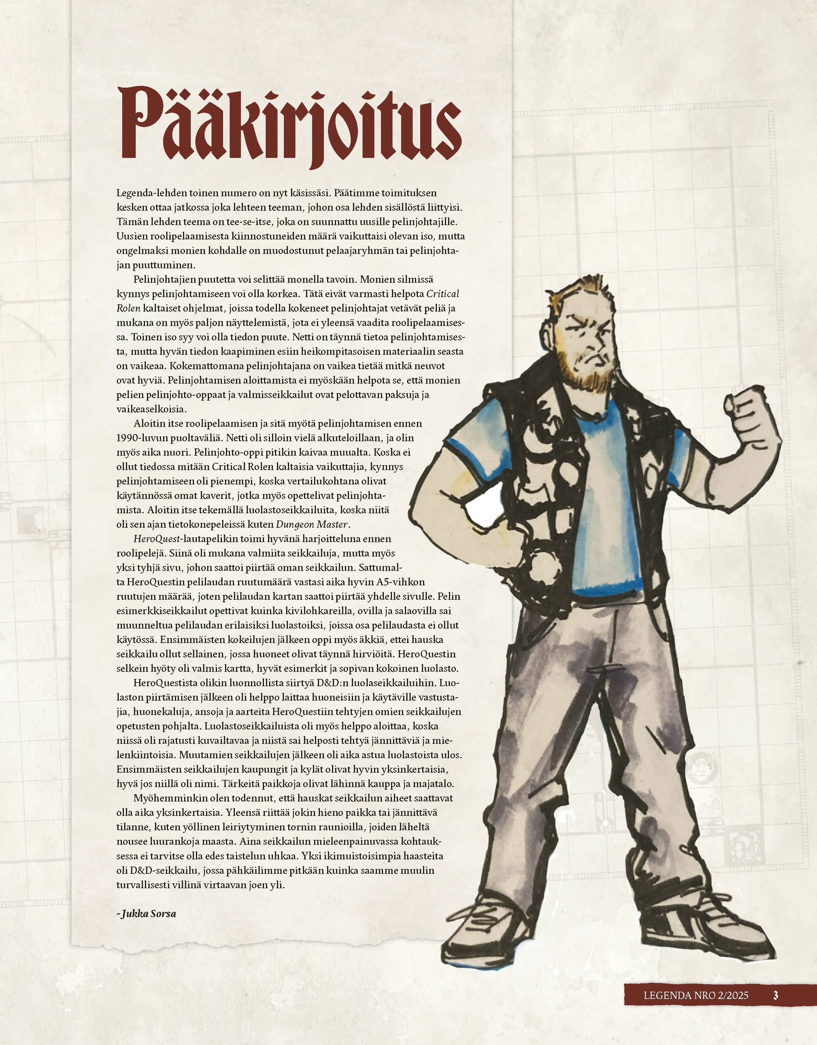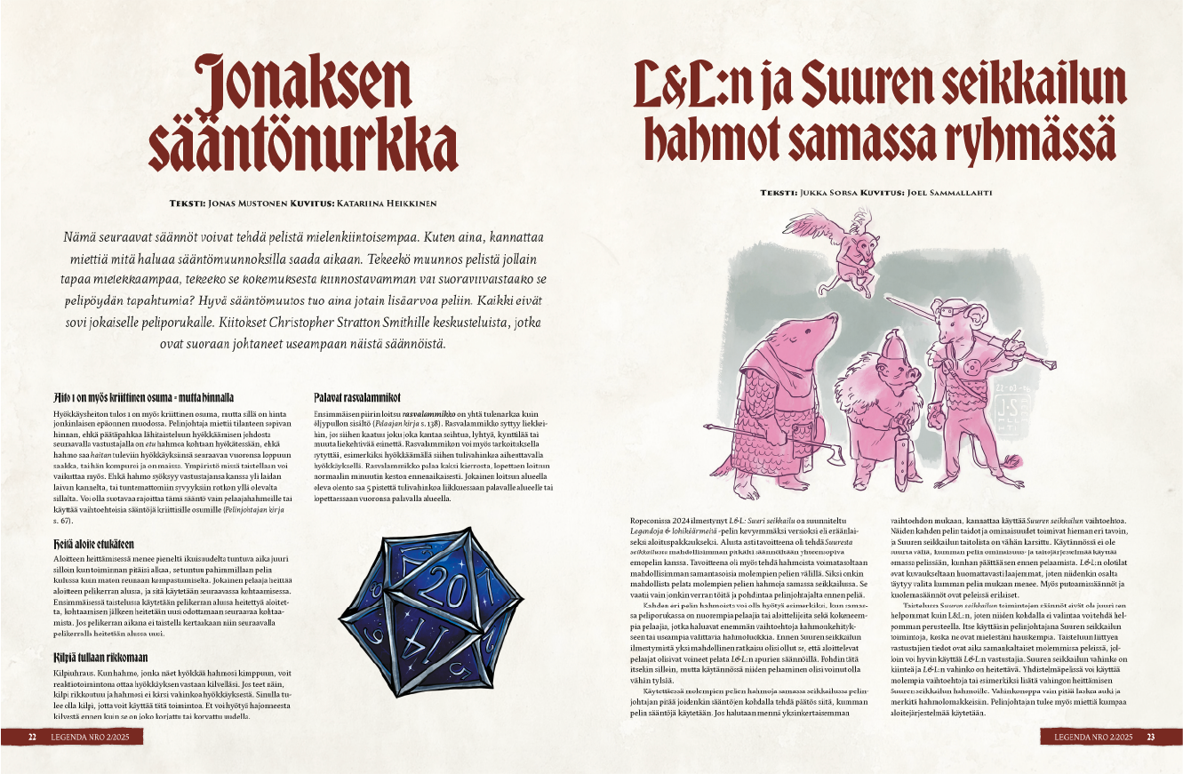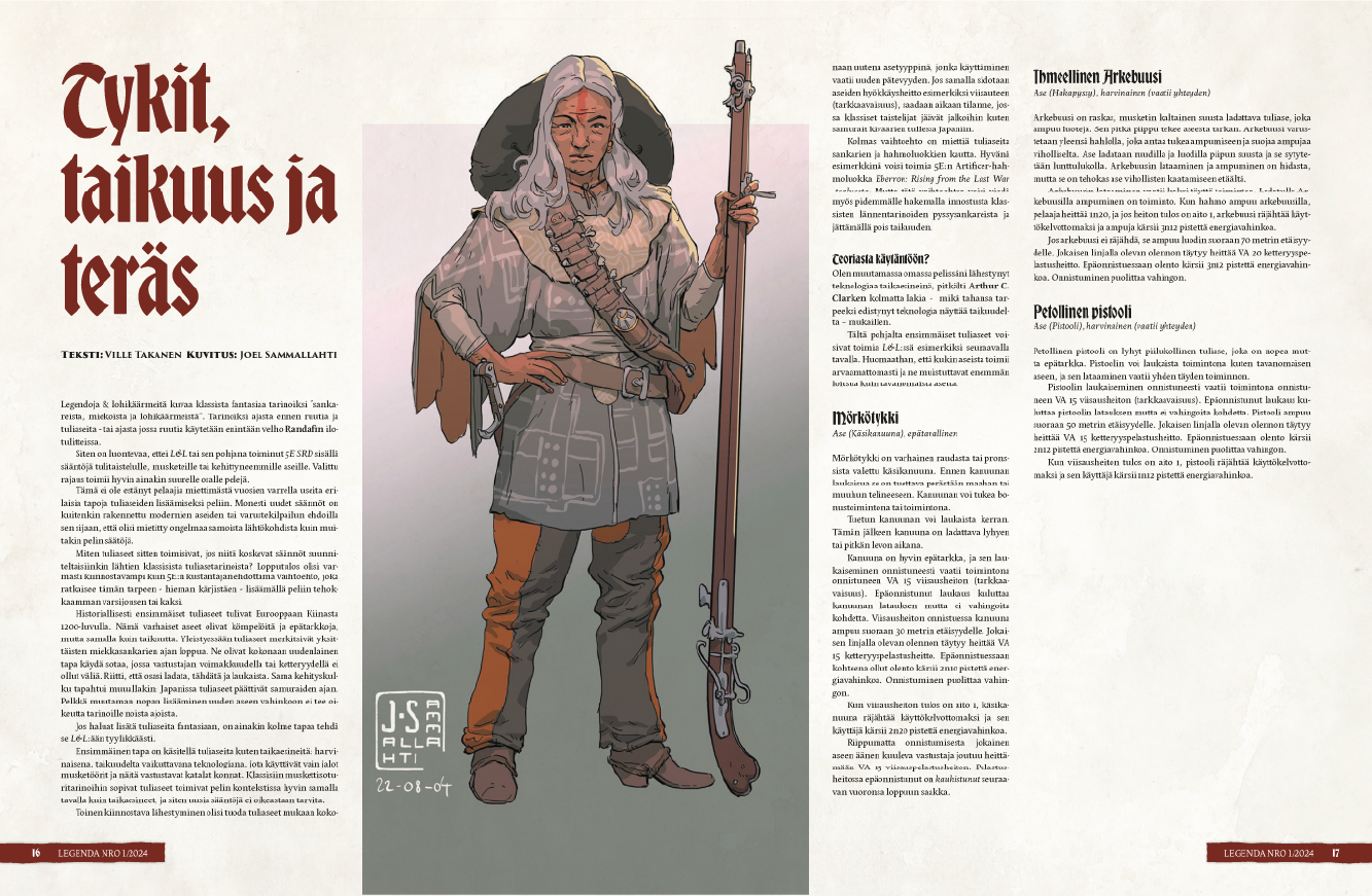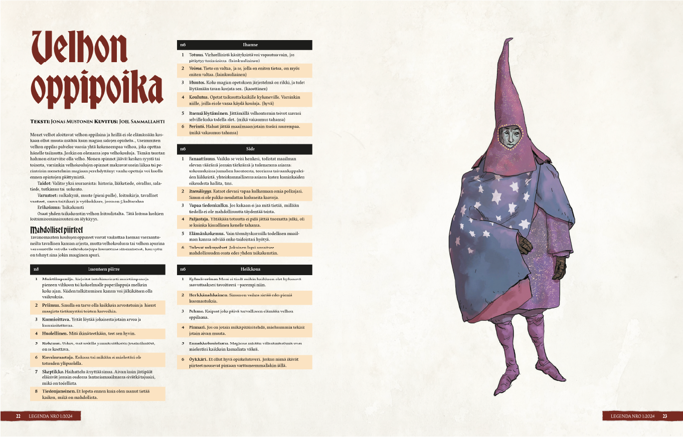 Legendaan sopii kaikki fantasiakuvitus. Emme maksa kuvituksesta mitään, joten älä ota tämän suhteen paineita. Pöytälaatikosta löytyvät aiemmin tehdyt kuvitukset ovat sopivaa materiaalia lehteen.